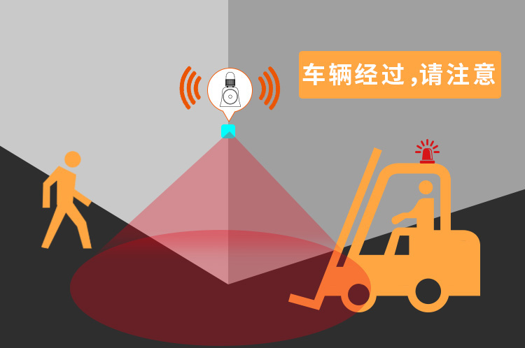 高精度测距,准确判断人员是否在拐角区域,并提醒厂区人员,有车辆经过,注意避让;